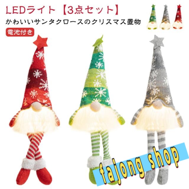 ■光る 3点セット 飾り イルミネーション LED ディスプレイ ドワーフ人形 北欧 照明 サンタクロース デコレーション ぬいぐるみ 卓上 クリ