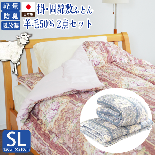 ■【送料無料】 日本製 呼吸する布団 羊毛混 50% 掛・固綿3層敷布団 2点セット シングル 掛150×210cm 敷100×210cm 固綿 敷布団 吸湿 放