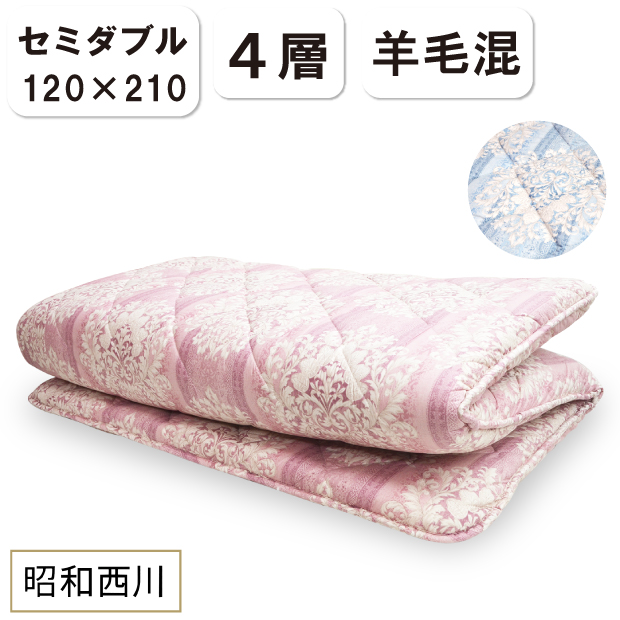 ■敷布団 昭和西川 羊毛混 四層 固綿敷き布団 セミダブル 羊毛敷き布団 フランス産ウール50% 日本製 4層 固わた セミダブルロング 多層 堅