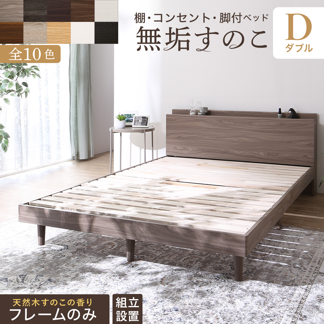 ベッド すのこベッド すのこ ダブルベッド ベッドフレーム ダブル マットレス 敷布団 無垢すのこ 収納 木製 頑丈 ベット フレームのみ ダブル 組立設置付き