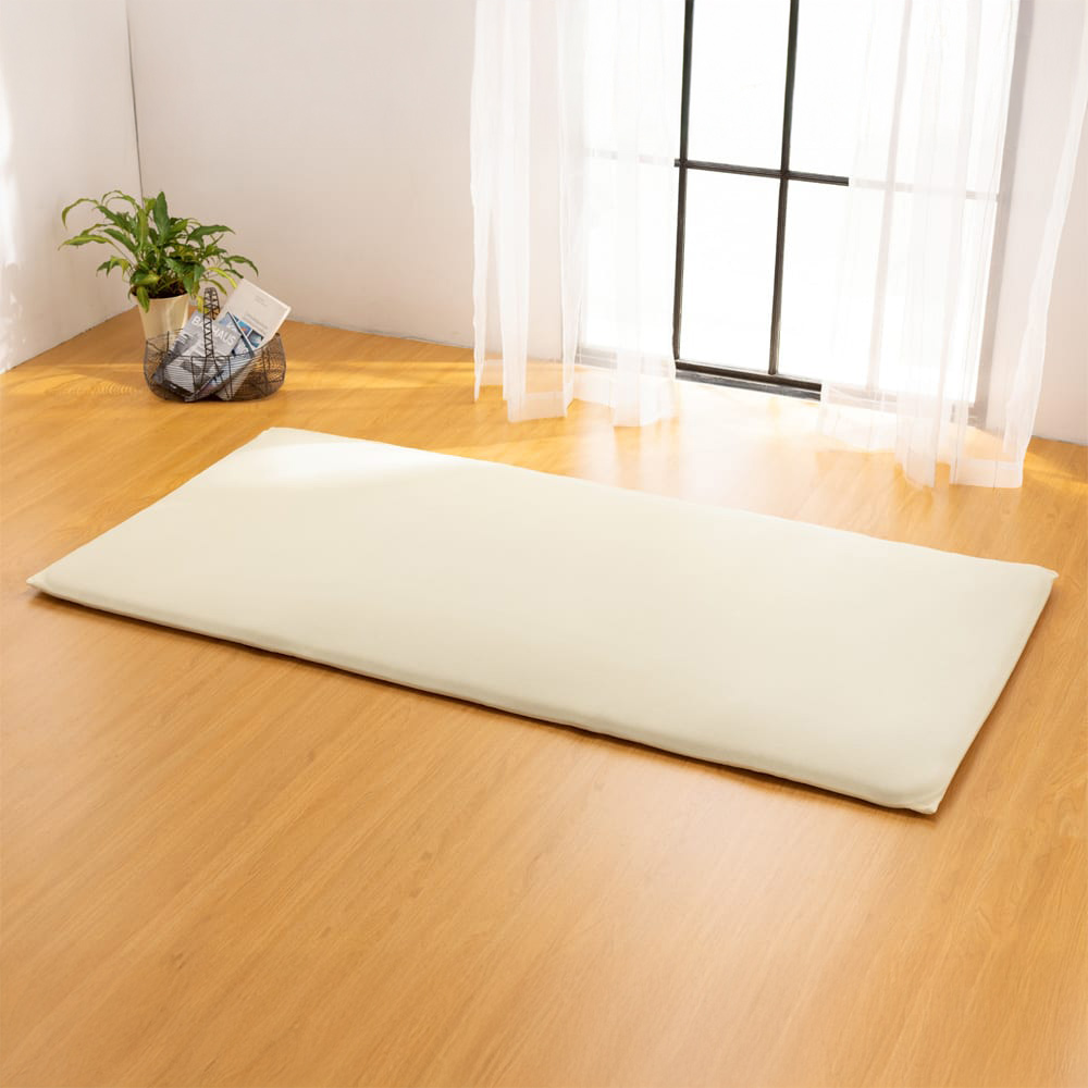 [敷布団・専用カバー付き]厚み約3cmという薄さでありながら、タテ型繊維の中芯・テイジンの「V-Lap(R)」が身体を下からしっかり押し上げて体圧分散するから、床に直敷きしても快適。お使いの寝具に重ねて寝心地の復活にも◎。肌ざわりの良い綿100%ニットの専用カバーは、ご自宅で洗えて清潔に保てます。