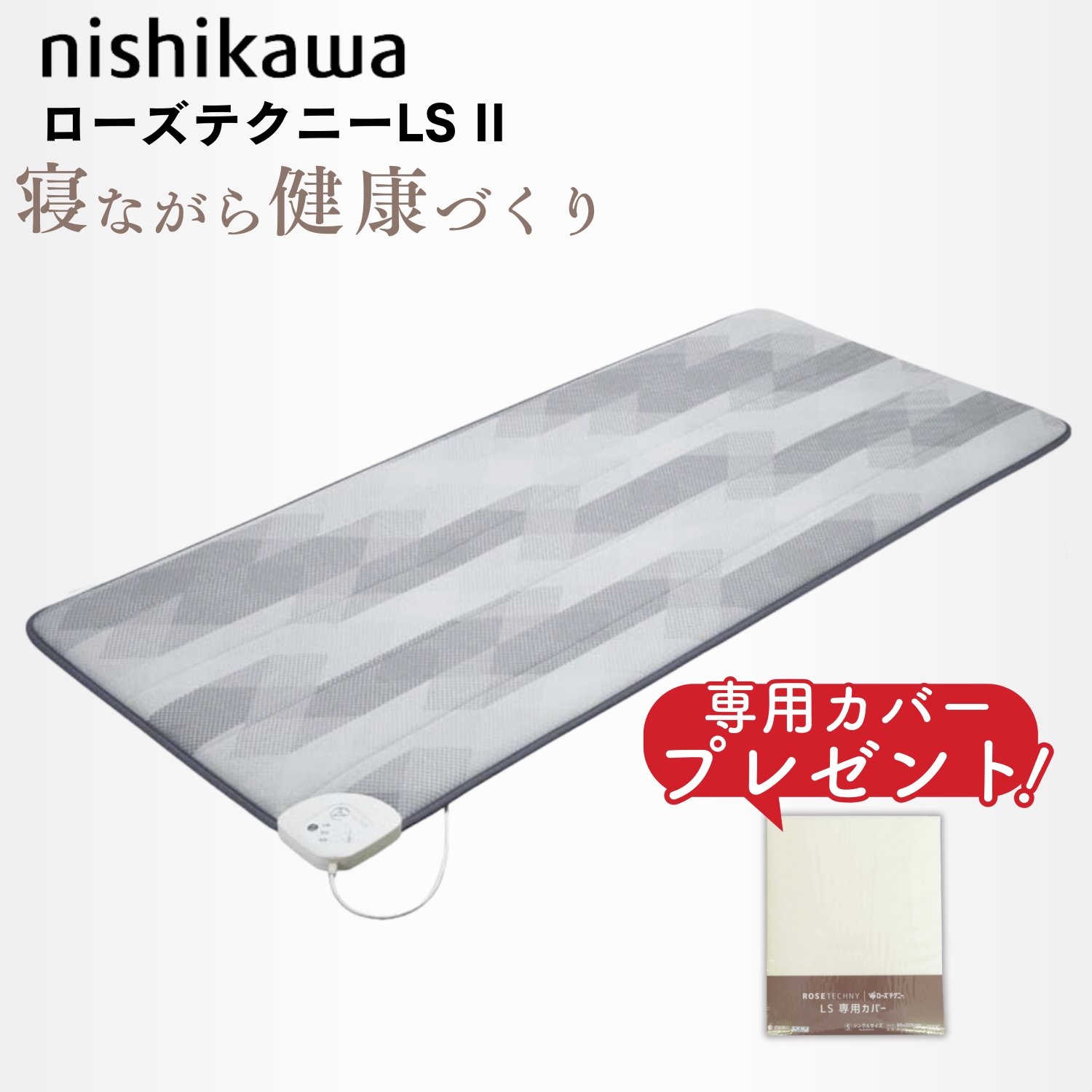 西川ローズテクニーLS2 電位・温熱組合せ家庭用医療機器 商品の特徴 ・電位治療と温熱治療の2つの治療法を通して、8つの効果があります。 ・電位治療によって、頭痛、肩こり、不眠症、慢性便秘をやわらげる効果があります。 ・温熱治療によって、血行をよくし、胃腸の働きを活発にし、筋肉のこりをほぐし、疲れをとる、神経痛や筋肉痛の痛みをやわらげる効果があります。 ・カーボン面発熱体によるソフトな温熱で全身の血行を良くし、身体を温めます。 ・操作もシンプルで、基本操作はひとつのボタンで可能です。 ・保温時には、電位治療を同時に行うことも可能です。 素材: 【側生地】ポリエステル100% 【詰めもの】ポリエステル固わた カーボン面発熱体 サイズ:90×200×3.5cm カラー:グレー(日本製) 管理医療機器・認証番号: 303AKBZX00078000
