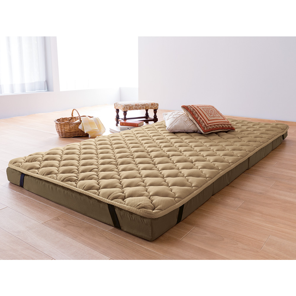 "収納のディノス"が考えた大人気の敷き寝具!寝心地にはこだわりたいけど、敷布団の収納スペースがなくて…というお悩みありませんか?上層パッド+下層マットレス(4つ折りタイプ)の2層式で、そのお悩みを解決。狭い場所でもコンパクトに収納出来ます。上層、下層分割式なのでお手入れもラクラクです。快適な寝心地と省スペースを両立したマットレスをお探しのあなたに!クローゼットにぴったりの収納上手 & 寝心地◎のよくばり敷布団。