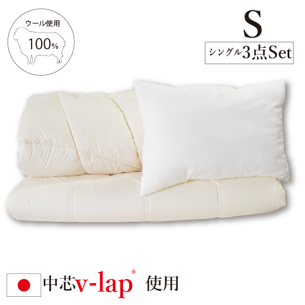 ■送料無料 フランスウール 羊毛 布団3点セット シングルサイズ 掛布団・敷布団・枕 フランス羊毛100% 贅沢 フランス産 暖かい 吸湿 放湿