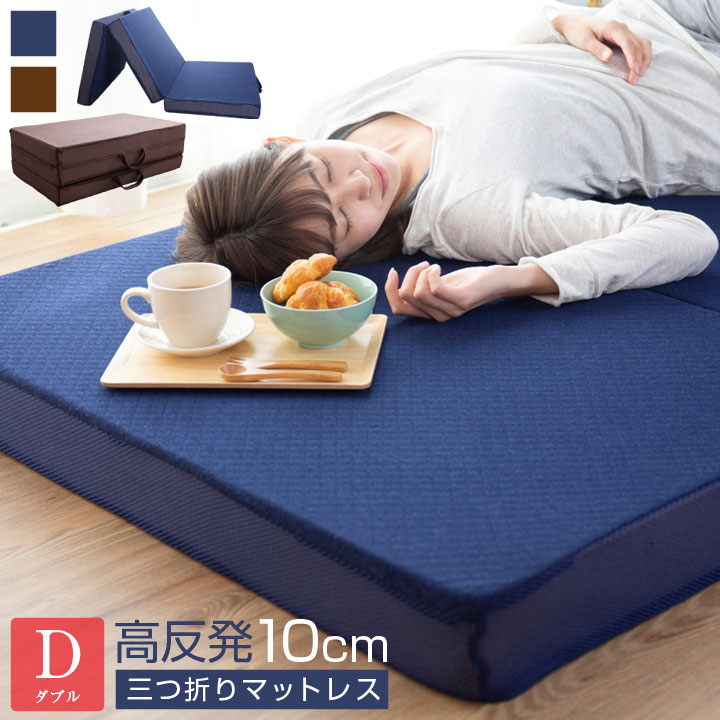 マットレス 高反発 三つ折り 10cm ダブル ウレタン 3つ折り 折りたたみ 敷き布団 敷布団 洗える ベッド 取っ手付き 硬め かため A984