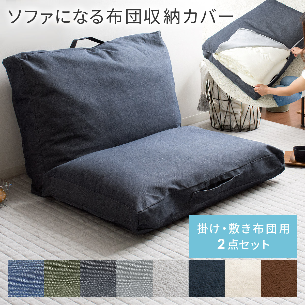 ■2点セット ソファになる布団収納カバー 布団収納袋 布団収納 ふとん収納 布団 収納袋 クッション 収納ケース ソファ 敷布団 掛布団 セッ
