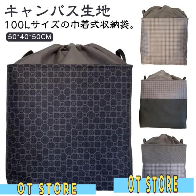 ■衣類収納 羽毛布団 紐付き 布団収納ケース 布団収納袋 おもちゃ 毛布 キャンバス 布団収納袋 敷布団 100L 巾着 大容量 帆布 巾着袋 布団
