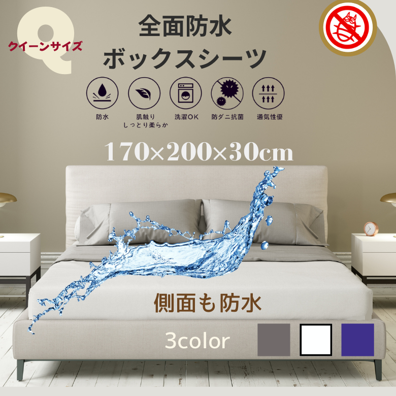 ■ボックスシーツ 全面防水 クイーン 防ダニ 側面防水 安い ベッドシーツ ワイド シーツ 敷布団 カバー おねしょシーツ 介護シーツ マット