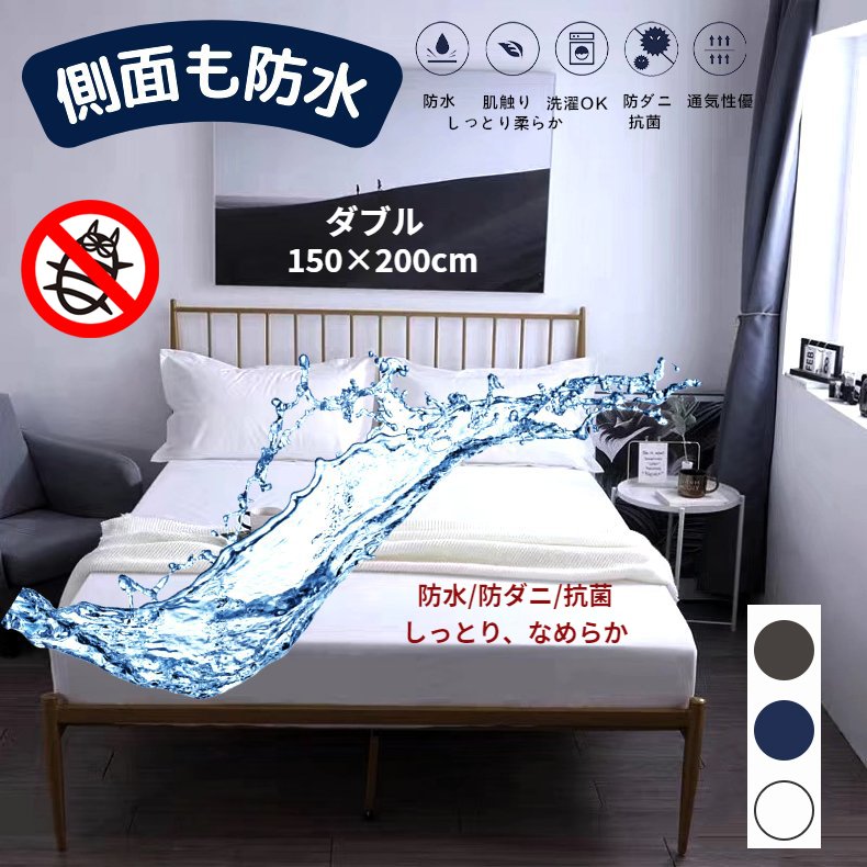 ■ボックスシーツ 全面防水 ダブル 防ダニ 側面防水 安い シーツ 敷布団 カバー おねしょシーツ 介護シーツ マットレスカバー ベッドカバー
