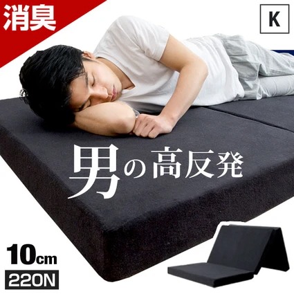 マットレス キング 男の高反発 極厚 10cm 消臭 竹炭入り 220N 3つ折り 高反発 キングサイズ 超低ホル ベッドマット 高反発マット 高反発マットレス 三つ折り 折りたたみ 三つ折 洗える カバー 圧縮 圧縮マットレス【商品番号:1381013010】