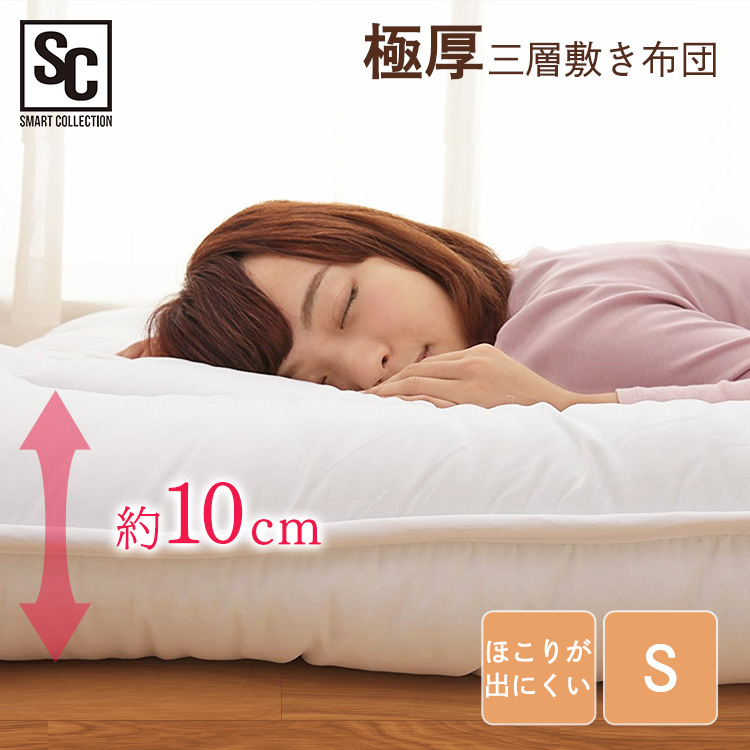 ■日本製 三層構造 極厚 敷き布団 シングル S 抗菌 防臭 防ダニ 固綿 高反発 ボリューム 厚手 10cm 軽量 腰痛 体圧分散 国産 敷布団 敷きふ