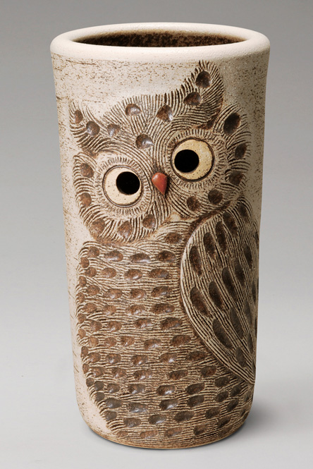 ■傘立て 信楽焼 ふくろう彫り傘立(白) 傘立 陶器 彩り屋_