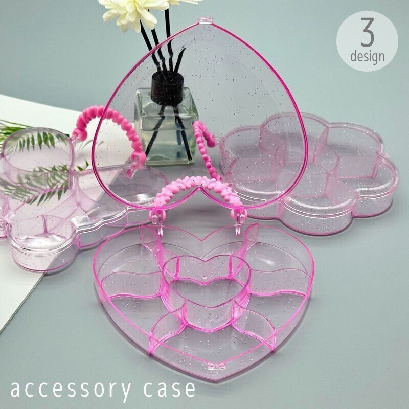 ■アクセサリーケース 小物入れ 持ち手付き クリア 透明 ラメ キラキラ ハート フラワー バタフライ 花 蝶 収納ケース おしゃ