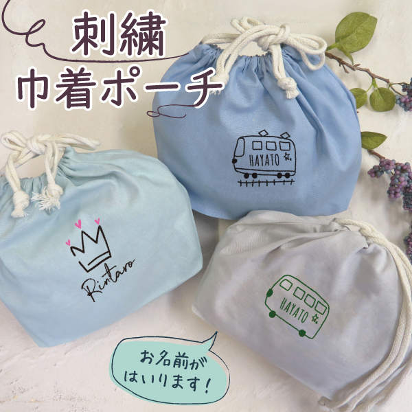 ■巾着 巾着袋 給食袋 小物入れ ポーチ 名入れ お名前 刺繍 記念品 卒園式 卒園記念 保育園 幼稚園 卒業式 卒業記念品