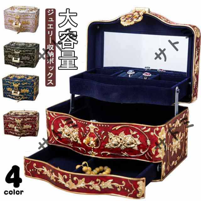 螺鈿細工 ジュエス 小物入れ 収納 大容量 宝箱 宝石箱 小物入れ 指輪 鍵付き アンティーク調 ミラー付き アクセサリーケース 木製 ネックレス ピアス ジュエリーケース 引き出し ネックレス 宝石 アクセサリー入れ リング レッド ホワイト ブルー