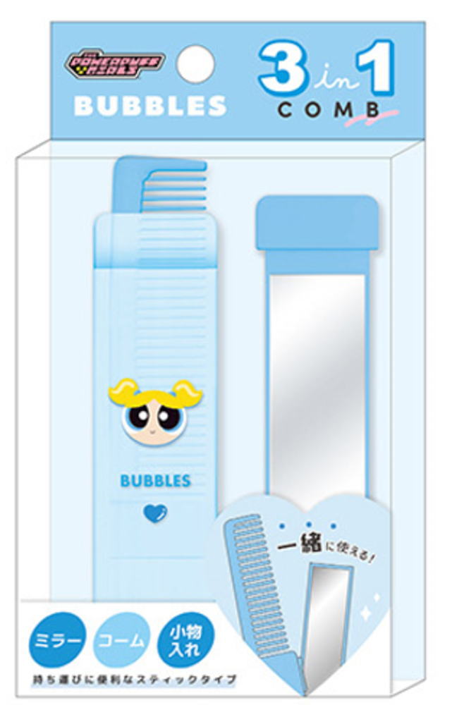 【パワーパフガールズ】多機能スライドコーム【バブルス】【パワパフ】【アメキャラ】【鏡】【ミラー】【小物入れ】【ケース】【クシ】【ブラシ】【髪の毛】【ヘアケア】【ヘアアイテム】