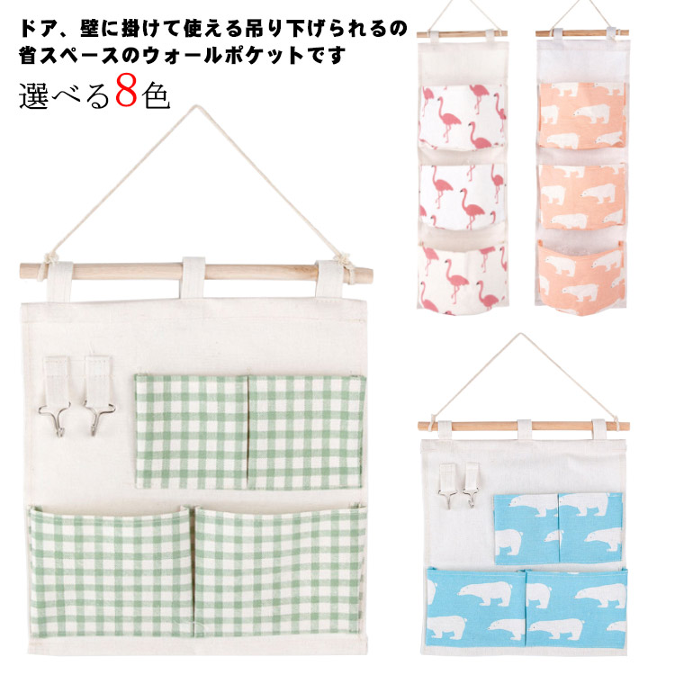 ■ウォールポケット ドア収納ポケット 3ポーチ 4ポーチ 綿麻 ナチュラル 吊り下げ 壁面装飾 ウォールデコ 押入れ 大容量 多機能 小物入れ