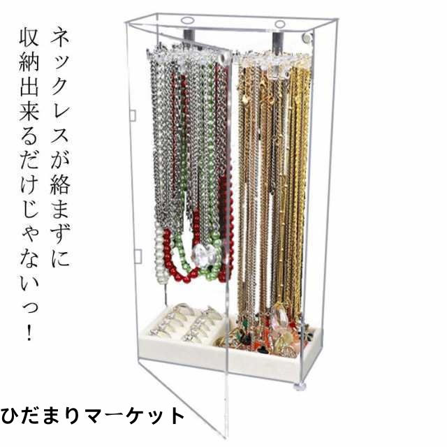 ■イヤリング ネックレスケース ジュエリーケース 回転式ネックレスケース 大容量 扉式 絡まない 高級アクリル ジュエス ピアス ネックレス