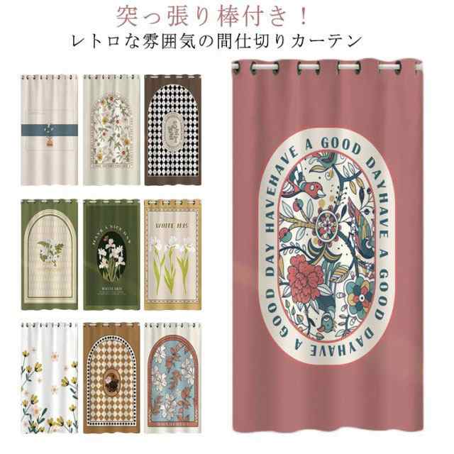 キッチン のれん おしゃれ 保温 目隠しカーテン 暖簾 突っ張り棒付き つっぱり棒 間仕切りカーテン 間仕切り 玄関 カーテン 突っ張り式 脱衣所 ドアカーテン ロング丈 断熱 遮熱 防寒 ドア 省エネ対策 蚊よけ 虫除け 模様替え レトロ 北欧風 花柄 間仕切りカーテン