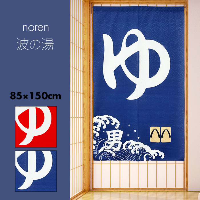 ■のれん 暖簾 おしゃれ カーテン 間仕切り 仕切りカーテン 目隠し 温泉 銭湯 旅館 お風呂 湯 女湯 男湯 入口 波の湯 85×150cm