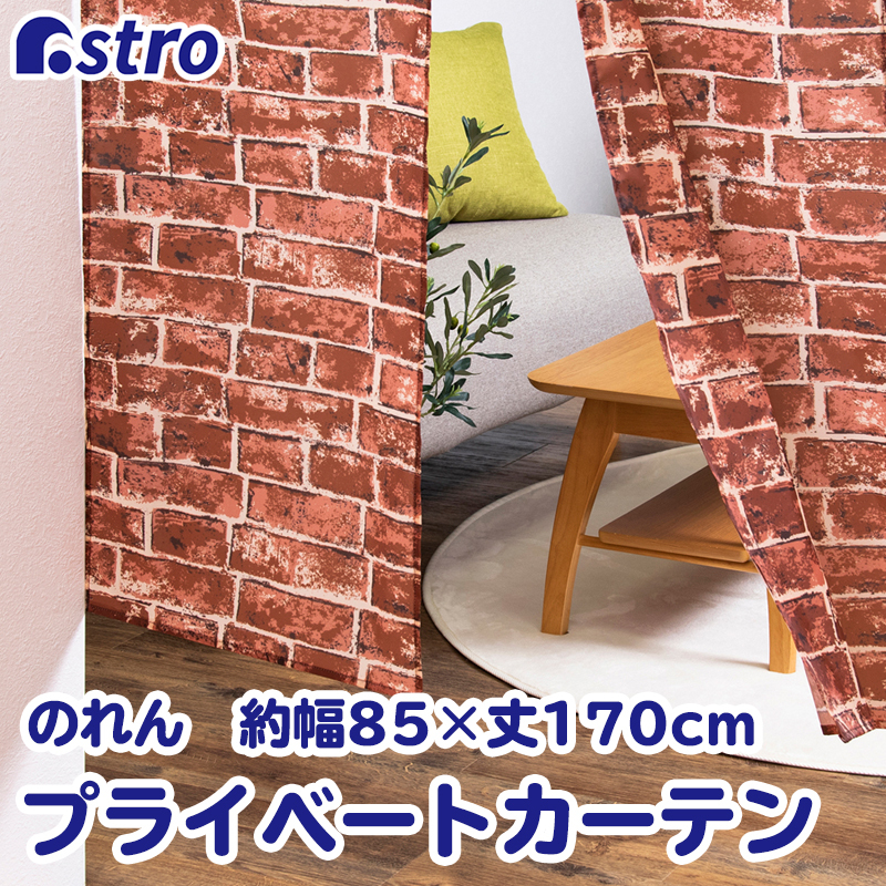 ■アストロ のれん ブラウン レンガ柄 プライベートカーテン 室内用 カフェ 仕切り 個性的 丈170cm 822-53 大