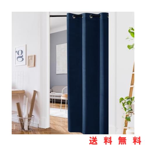 ■Deconovo 完全遮光 のれん 玄関 キッチ リビング 幅140丈180cm ブルー 飲食店 ベルベット 出入り口 和風 断熱カーテン 防寒 防音 厚手 間