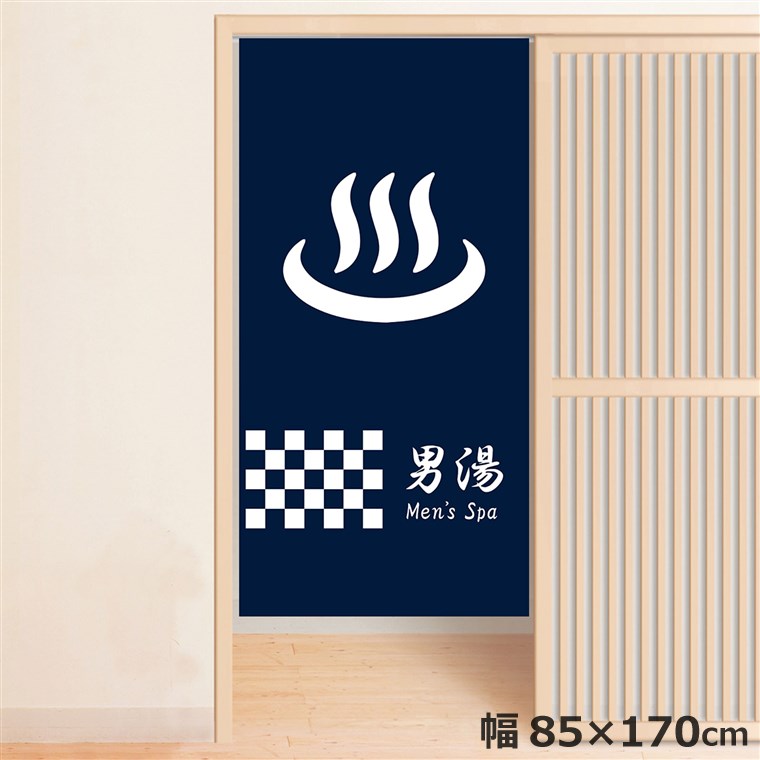 ■のれん 洗える 目隠し 間仕切り タペストリー オリジナルプリント 転写 男湯 約85×170cm 温泉 ゆのれん 業務用 旅館 温泉マーク ブルー