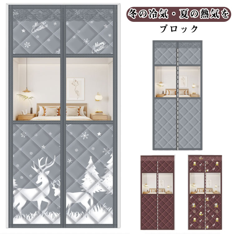 ■マグネット式 のれん マグネット式 カーテン 間仕切りカーテン 防音 透明窓付き 暖簾 自動で閉まる 玄関 冬 冷気遮断 厚い 遮光 防風 ド