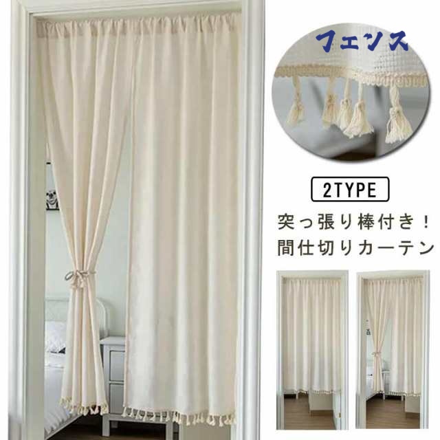 間仕切りカーテン のれん カーテン 遮光 目隠し 出窓 ロング 突っ張り棒 麻 暖簾 シンプル 玄関 脱衣所 棚 キッチン 突っ張り棒付き つっぱり式 つっぱり棒 お店用 入り口 寝室 部屋 キッチン居間 子供部屋 洗面所 階段 リビングルーム 無地 ホワイト