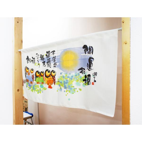 ■のれん 和 和風 短丈 縁起物 フクロウ ふくろう 幅85×丈45cm 日本製 送料無料