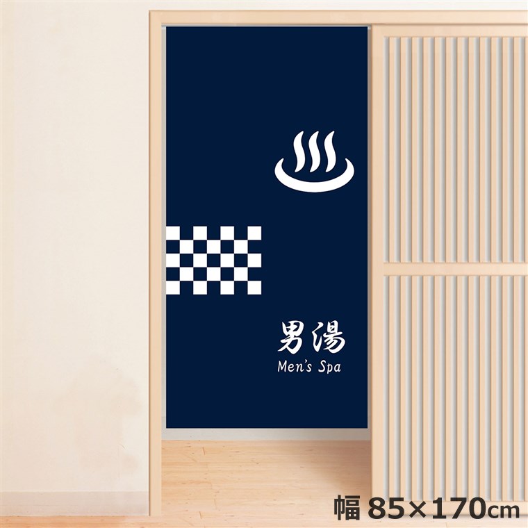 ■のれん 洗える 目隠し 間仕切り タペストリー オリジナルプリント 転写 男湯 約85×170cm 温泉 ゆのれん 業務用 旅館 温泉マーク ブルー