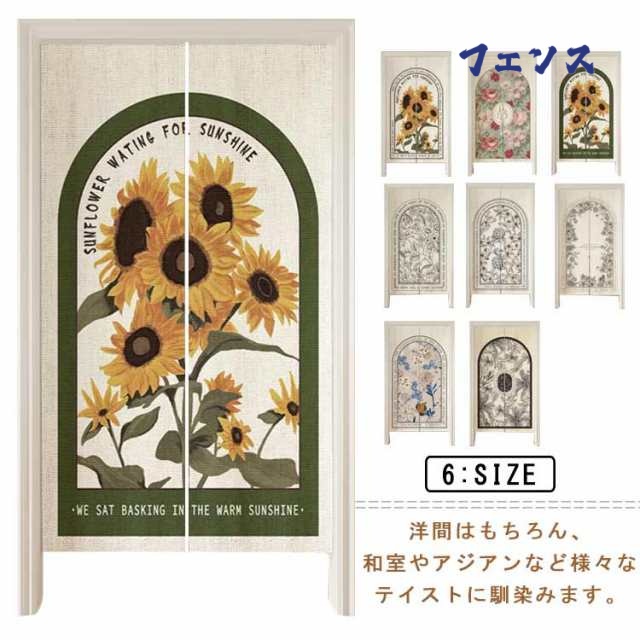 ■のれん 暖簾 おしゃれ 北欧風 向日葵柄 間仕切りカーテン ロング 目隠し 遮光 玄関 階段 廊下 リビング 脱衣所 お風呂 戸口カーテン プラ