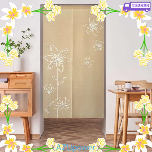 ■のれん 暖簾 おしゃれ 北欧風 フラワー柄 間仕切り カーテン 170センチ ロング 玄関 階段 廊下 リビング 脱衣所 お風呂 戸口 目隠し 遮光