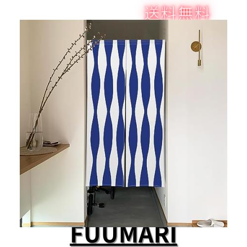 ■Qinunipoto のれん 北欧 青い線 シンプル風 暖簾 幅85×丈150cm インテリア 目隠し おしゃれ すだれ 遮光 部屋 間仕切り ロング カーテン