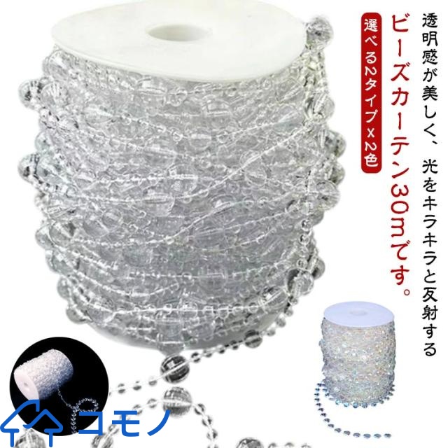 ビーズカーテン 30cm キラキラ のれん ビーズカーテン 間仕切り オーロラ クリスタル 暖簾 反射 透明 クリア 虹色 カーテン レインボー 装飾 ディスプレイ DIY 手作り ビーズチェーン カットOK 店舗 業務用