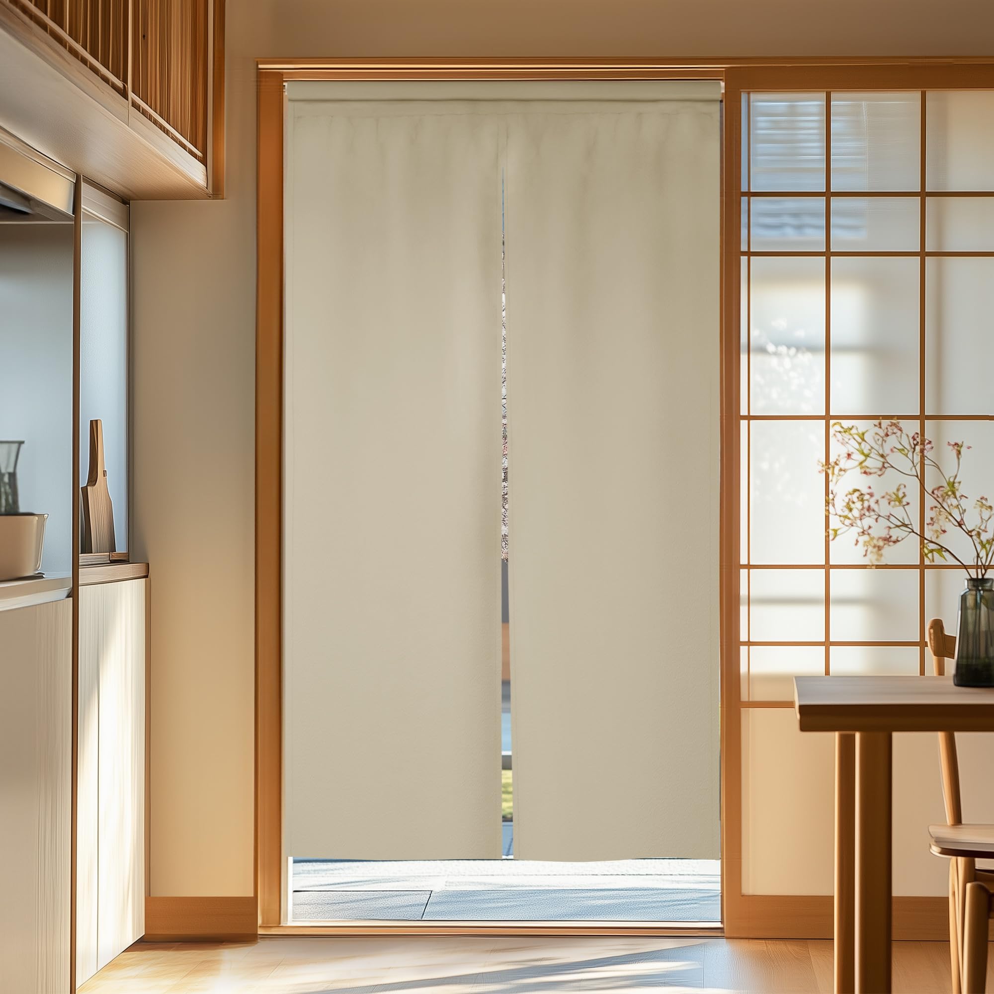 ■Deconovo 遮光 のれん 玄関 キッチ リビング 飲食店 出入り口 和風 断熱カーテン 防寒 防音 厚手 間仕切り 無地 幅72丈150cm ベージュ