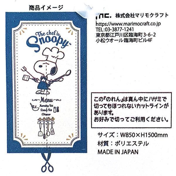 ■スヌーピー PEANUTS のれん シェフ BL ブルー マルチクロス 暖簾 日本製