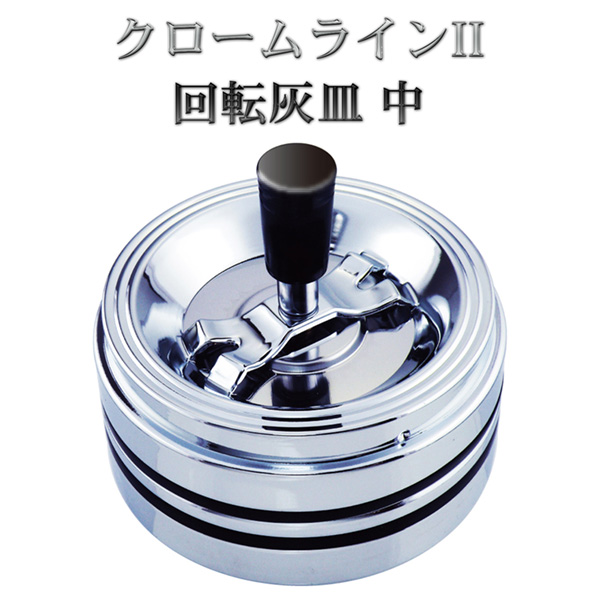 ■灰皿 フタ付き 卓上 クロームラインII 回転灰皿 中‐臭いが漏れにくい 蓋付き 吸い殻入れ 大容量 吸殻の飛び散り防止 卓上灰皿 オシャレ