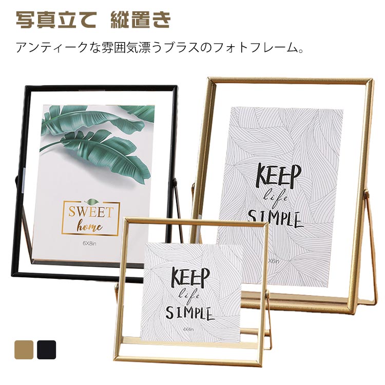 ■フォトフレーム 写真立て 真鍮 ガラスと真鍮 縦置き メニュースタンド フォトスタンド フォトフレーム ブラック ポストカード アンティー