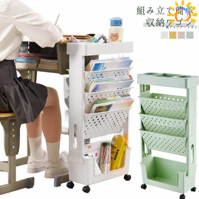 ■ファイルラック 収納ワゴン キャスター付き 5段 組立式 省スペース マガジンラック ファイルワゴン 新聞ラック 絵本棚 絵本ラック 本棚