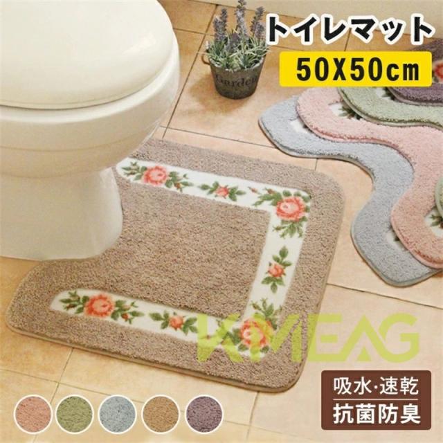 ■トイレマット 北欧 単品 おしゃれ 薔薇 標準 50*50cm ふわふわ 可愛い 花柄 吸水 滑り止め加工 シンプル ピンク 無地 洗える 足元マット
