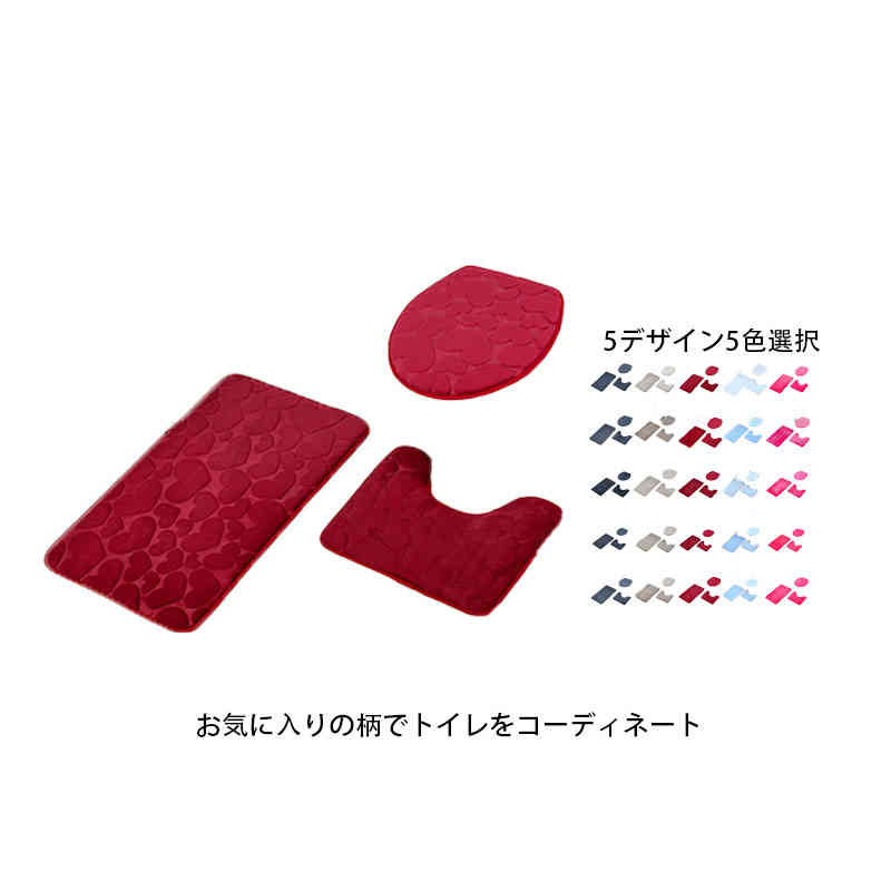 ■マット トイレマット 3点セット シンプル 総柄 モダン ナチュラル ふわふわ 洗える 高級 ホテル 約40×50cm 蓋カバー 大きいサイズ 厚手