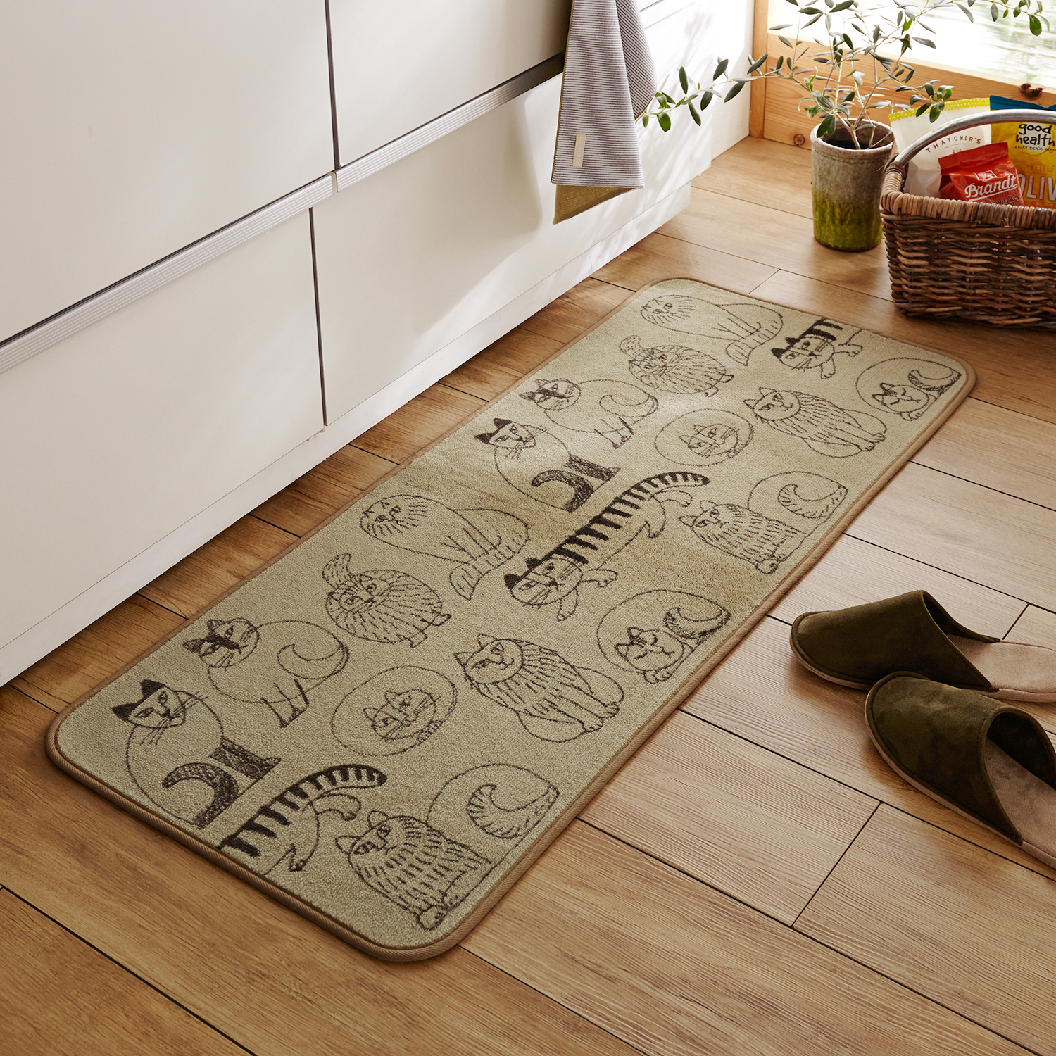 スウェーデンの陶芸家、リサ・ラーソンの人気デザインがキッチンマットにさまざまな種類の猫がおしゃれでかわいい表面は毛足が短めなので、ゴミが入り込みにくくお掃除がラク抗菌防臭加工をほどこし、いつも清潔さをキープ裏面にはすべりにくい加工をほどこしましたシックで落ち着いた色合いも魅力