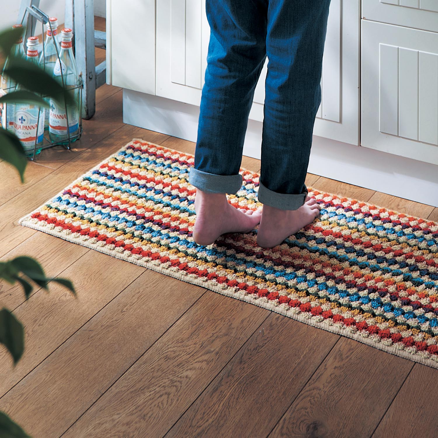 毛足がほぼ無い平織り+タオル地のような肌触りで、しっかりとしながら心地の良い踏み心地すべり止め付きで安心・安全汚れても手洗いができ、長くご使用いただけます歩行音も響きにくい嬉しい防音機能付き様々なデザインでご自宅のキッチンに合った一枚をお選びいただけます
