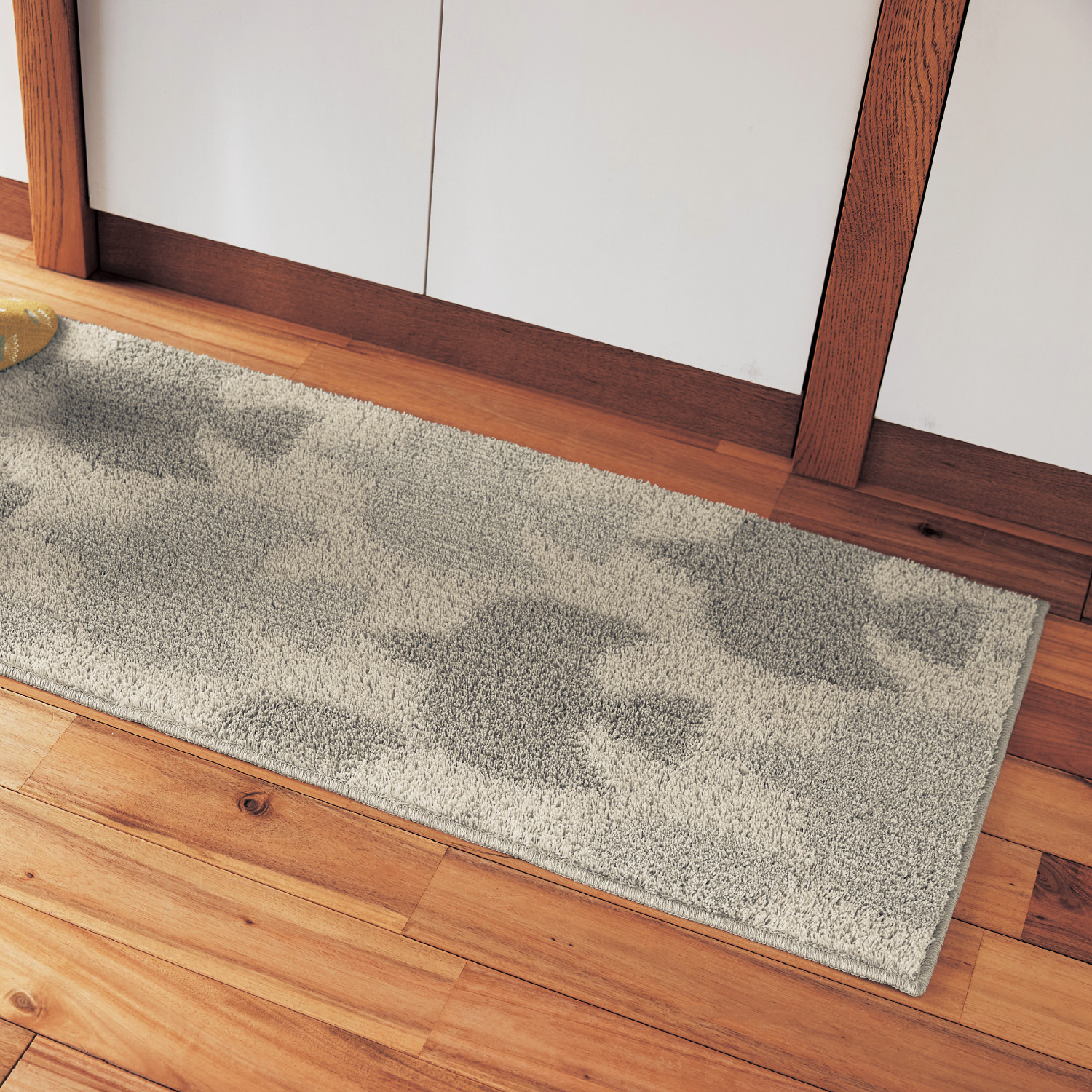 北欧調テキスタイル風デザインをプリントしたかわいいキッチンマットです織り感のある生地をイメージしたプリントと、デザインとの組み合わせがおしゃれパイルの毛足が短いのでゴミが入りにくくお掃除がラクお掃除ロボットが引っ掛かりにくい厚みですベルメゾンオリジナルデザインです。