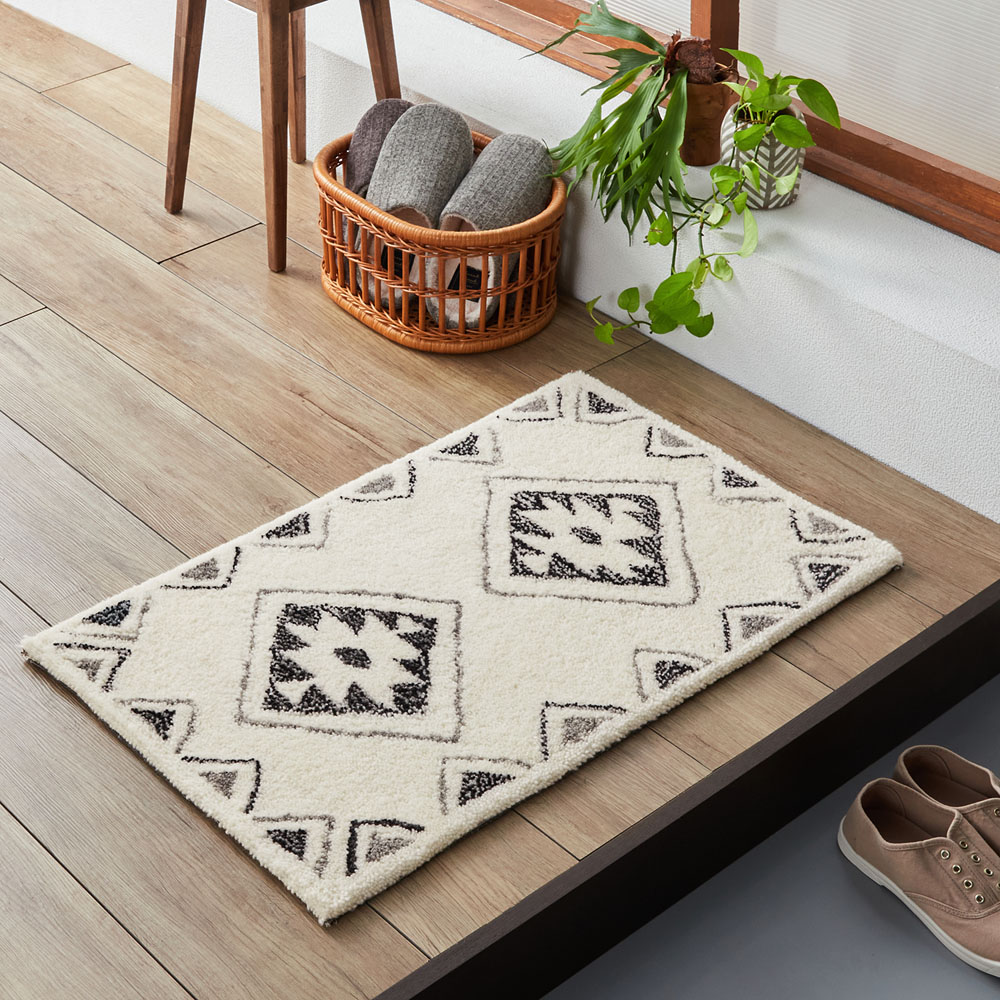 ■【ベルメゾン】ウール素材を使ったエスニック調デザインの玄関マット