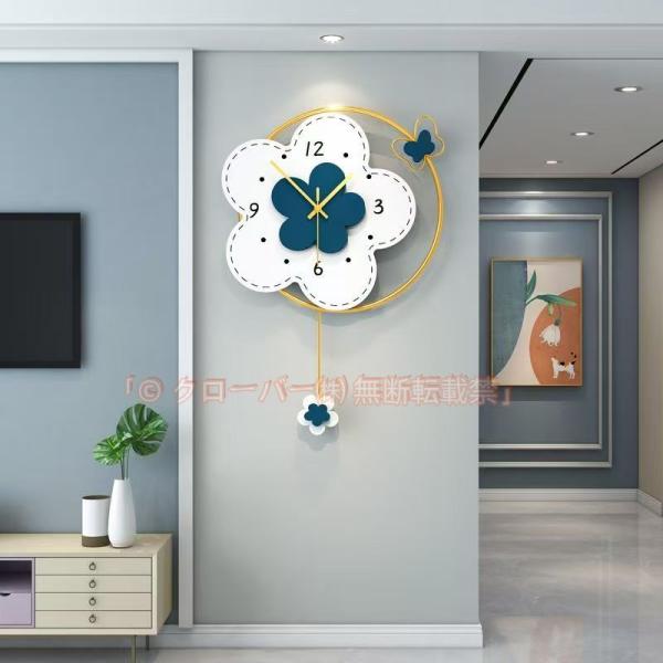 壁掛け時計 おしゃれ 振り子時計 ウォールクロック 花模様 金属製 インテリア時計 おしゃれ 北欧 掛時計 壁掛け 静音 かわいい おしゃれ モダン クローバー株式会社