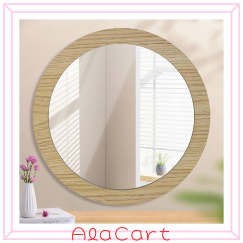 ■Browgrow 壁掛けミラー 木製 鏡 壁掛け鏡 丸型ミラー ウォールミラー 天然木フレーム 丸鏡 円形ミラー 飛散防止 洗面 玄関 化粧 (ナチュ