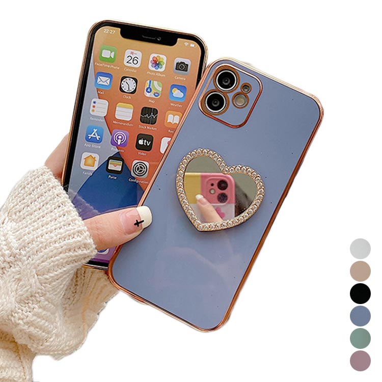 ■鏡 アイフォン15ケース 韓国 ケース ケース iphone15pro 14 きらきら ミラー付き ハート かわいい ラインストーン キラキラ ケース ipho