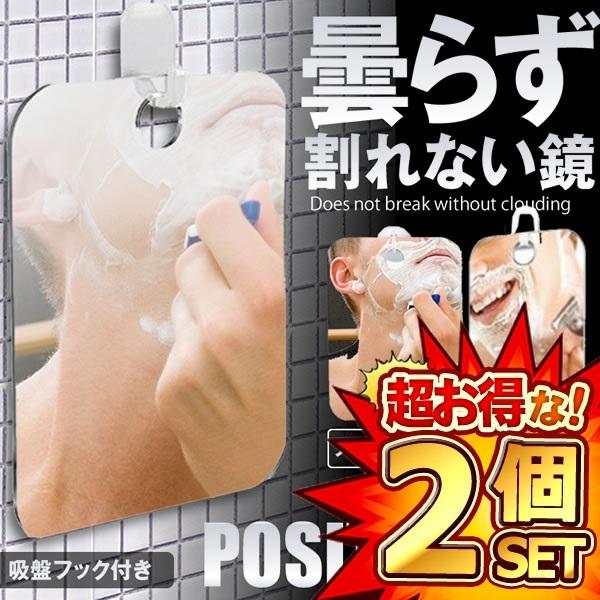 ■2セット 曇らず割れない お風呂ミラー バス 曇り止め 洗面所 吸盤 プラスチック フック付き くもり止め 鏡 壁掛け 防錆性 吊り下げ 軽量
